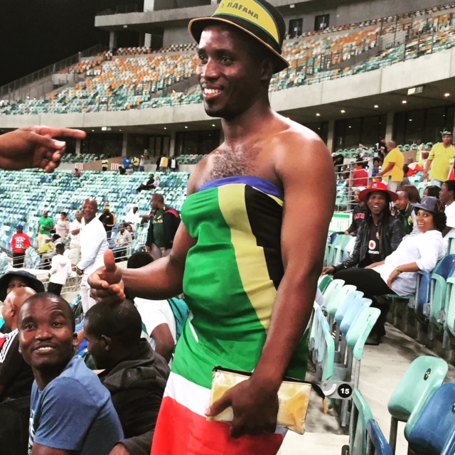 We headed into the stadium got some beer and headed to our seats. The atmosphere at Moses Mabhida Stadium is unmatched. The vibe was awesome with all sorts of characters popping up, from Kaizer Chiefs biggest supporter to a man dressed in drag and loving it.